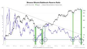 نسبت BTC به استیبلکوین در ذخایر بایننس در یک روند نزولی بلندمدت قرار دارد و اکنون به کف چندساله رسیده است.