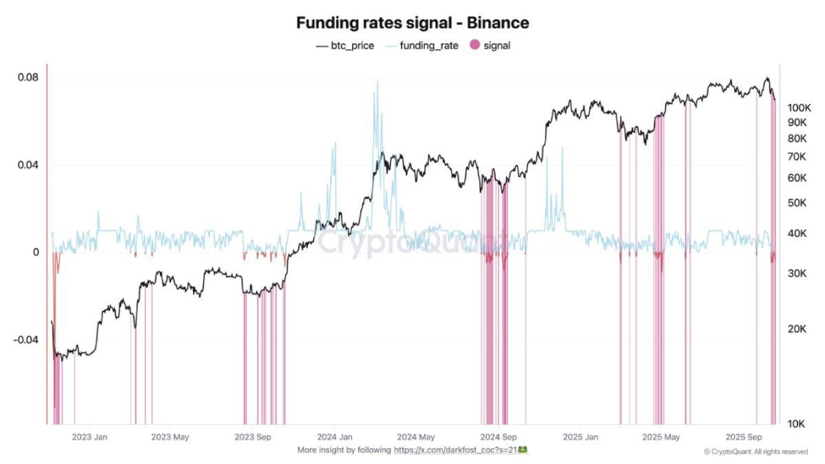 فاندینگ‌ریت یکی از دقیق‌ترین شاخص‌های روانشناسی بازار در معاملات فیوچرز است. نمودار جدید منتشرشده از سوی CryptoQuant نشان می‌دهد که بازار بیت‌کوین در اواخر ۲۰۲۵ وارد فاز تخلیه اهرم‌ها و پاک‌سازی پوزیشن‌های لانگ شده است.
