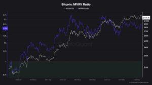 در دادههای جدید CryptoQuant، شاخص MVRV Ratio بیتکوین در محدودهی ۲.۰۶ قرار دارد؛ این یعنی بازار تقریباً دو برابر ارزش